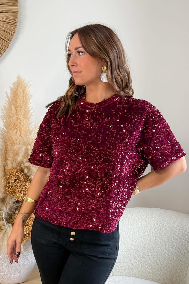 Blusa Sequins Wine