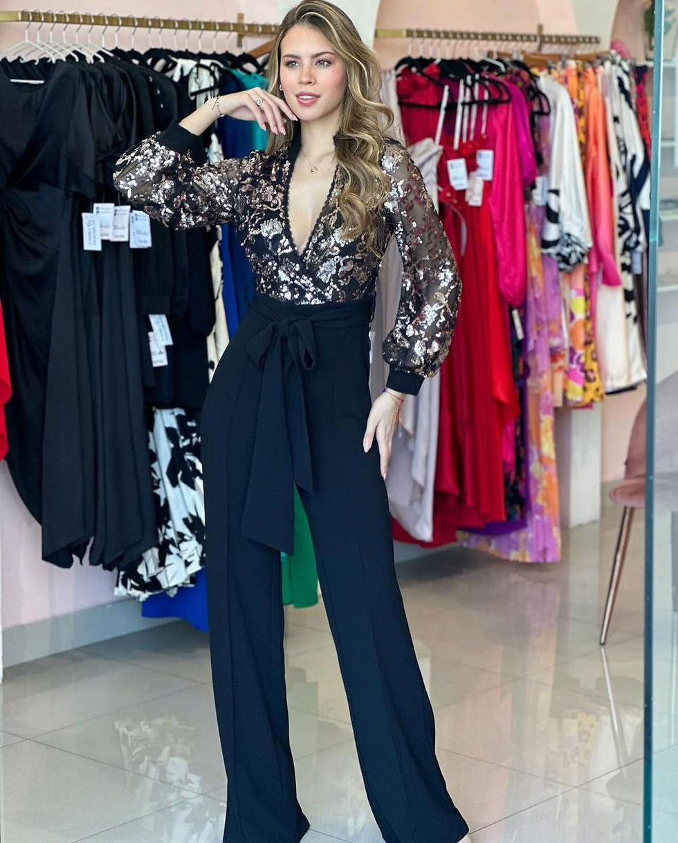 Jumpsuit negro con cinto dorado